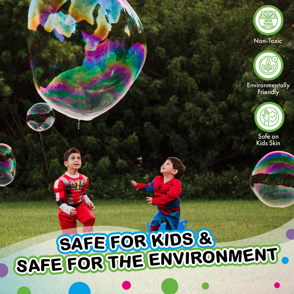 All you need is a cup of dish detergent, a gallon of water, and a packet of powder – and you’ve got 3 gallons of fun. Are you ready to rock some awesome bubbles?
